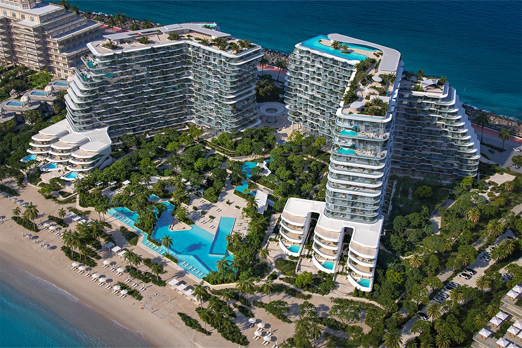 The development emphasizes a coastal-inspired design with panoramic sea views, high-end finishes, and a focus on serenity, privacy, and exclusive beachfront living.